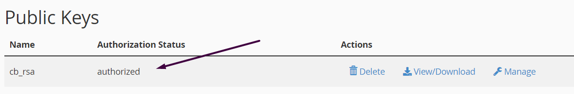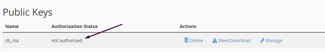 Step 4: After importing, still our key is not authorized to use. So click on the manage option.